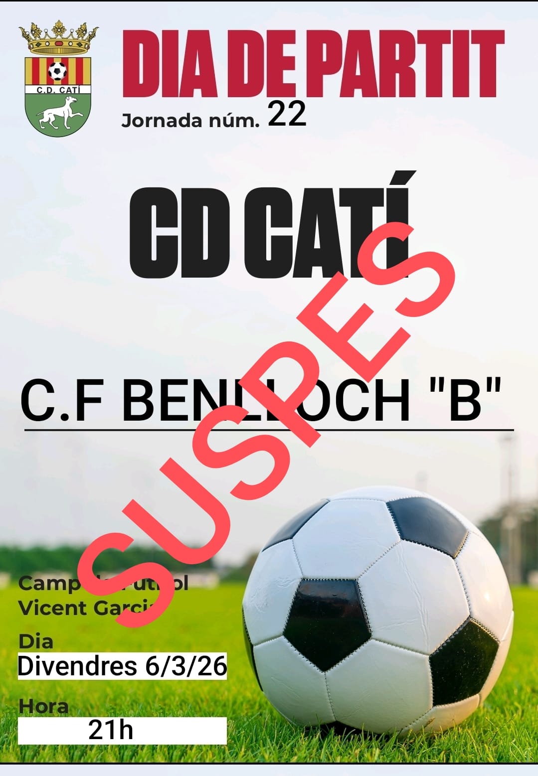 PARTIT (APLAÇAT PER LA PLUJA) (DIVENDRES, 02 D'ABRIL, 21:00 H)