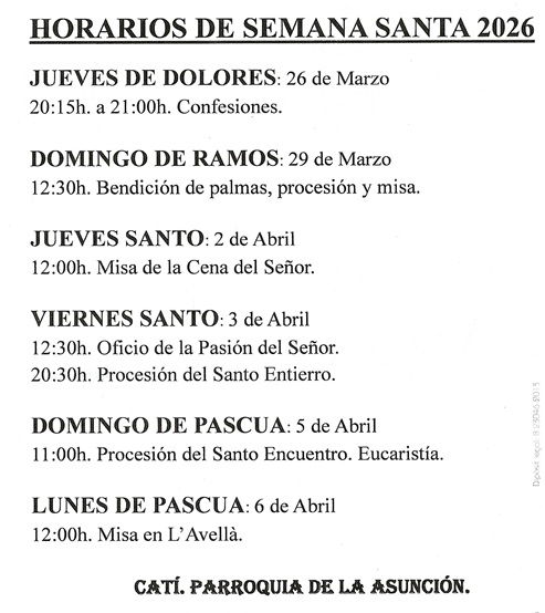 - La Setmana Santa (Dijous sant, divendres sant, dissabte sant)